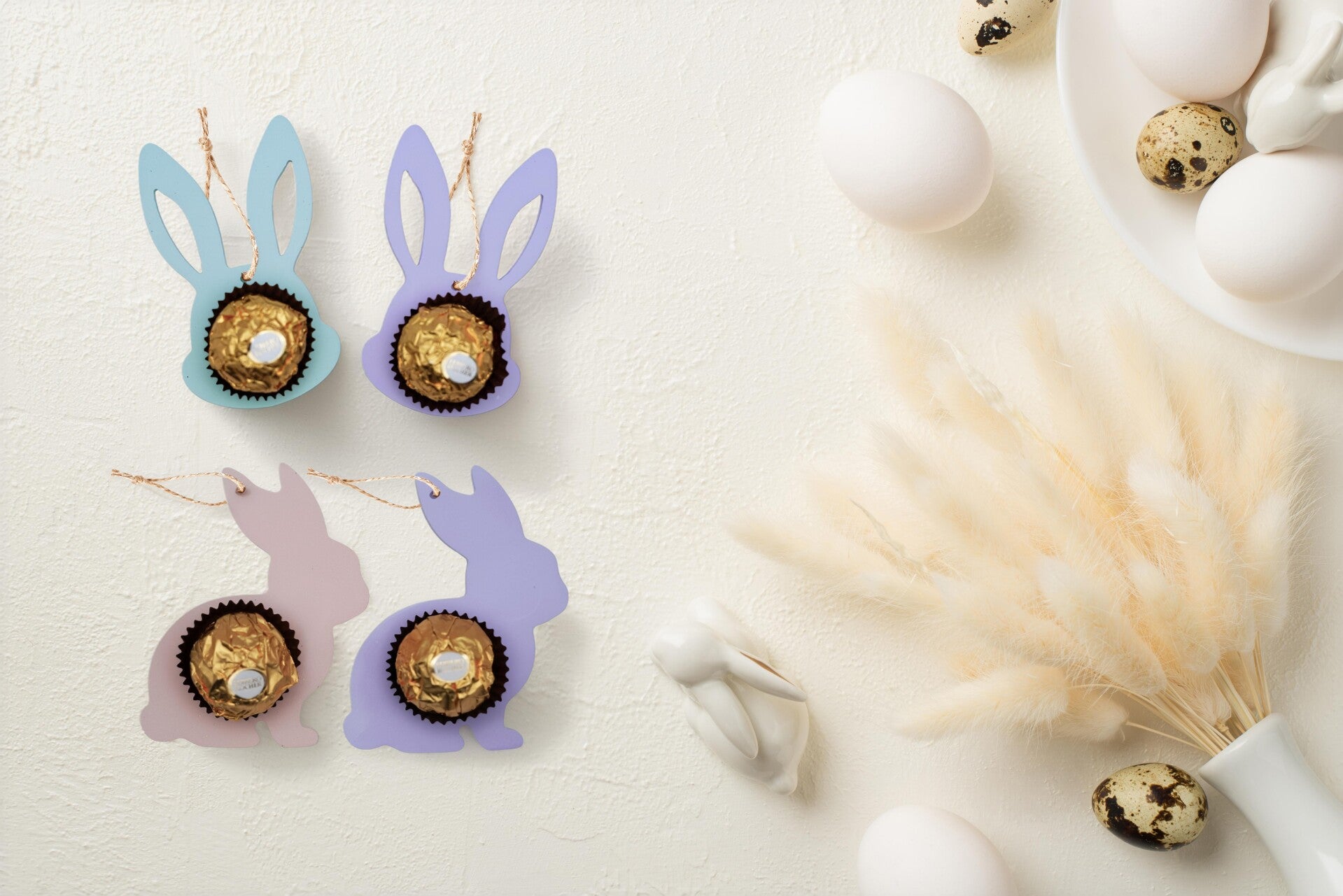 Die Anhänger eignen sich perfekt, um kleine Botschaften, Namen oder Grüße zu präsentieren – eine stilvolle und minimalistische Ergänzung zu Ihren Osterpräsenten.