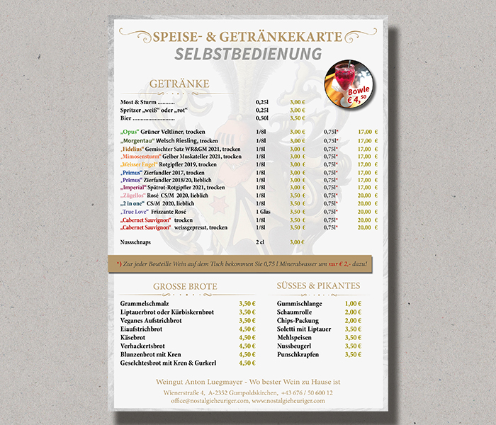 Wein- und Speisekarte